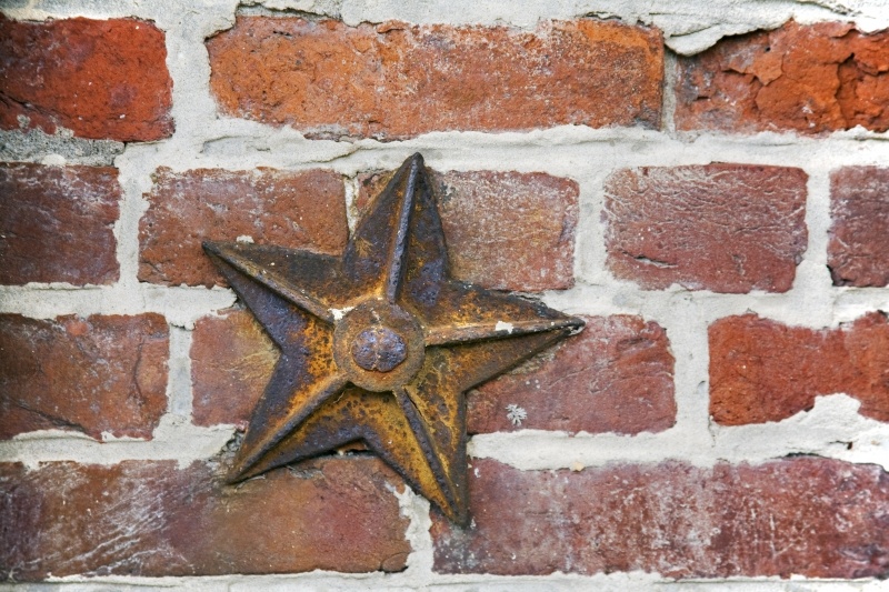 A star shaped metal on a brick wall